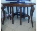 2 mesitas pequeñas en forma de media luna y de dos divisiones.