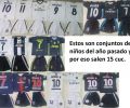 Los de niños nuevos de esta temporada salen en 18 el traje completo (short y pullover, buena calidad) desde la talla 4 hasta la 16, que le sirven a niños desde 2 años hasta adolescentes.