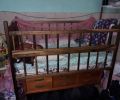 Cuna grande, en buen estado, elaborada con majagua y tiene un gavetero de 6 gavetas en la parte inferior. Incluye la lanzadera y el colchon. Se escuchan proposiciones.
