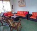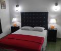 La habitación está climatizada con split de 1ton, además de un ventilador de mesa nuevo. Tiene una comodísima cama grande, caja fuerte digital, televisor LED 32 pulg con cajita digital, gavetero con espejo, amplio closet con gavetero y otras comodidades.Las ventanas dan al jardín de la casa.