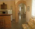 LA SALA ES MUY CÓMODA, BIEN AMUEBLADA (SOFA, BUTACAS, MESA DE CENTRO, VENTILADOR DE TECHO, TELEVISOR LED DIGITAL. SE DIVIDE DE LA COCINA POR UNA BELLA BARRA CON CUATRO BANQUETAS.